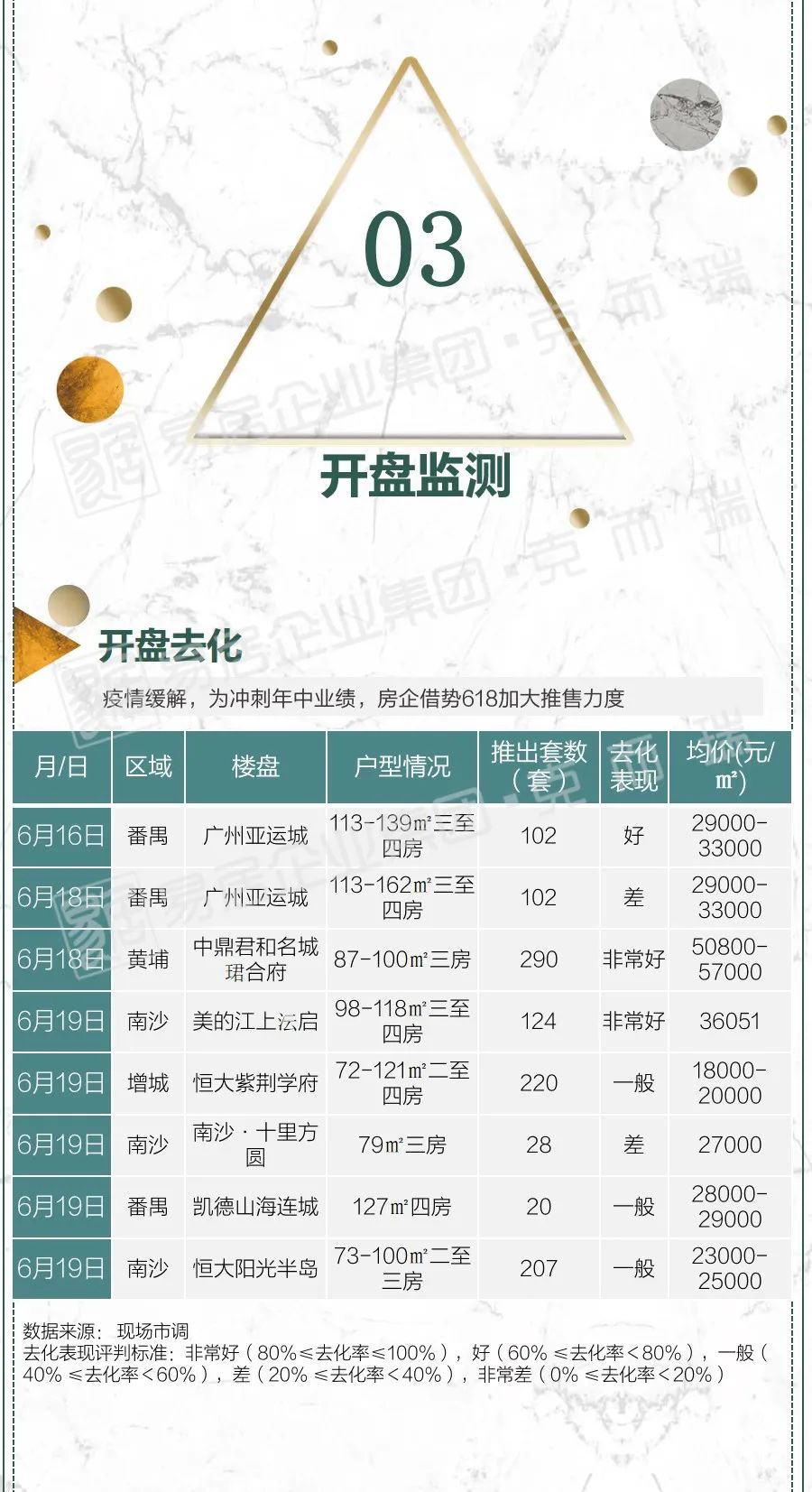 其中,黄埔、南沙各有1个新盘首开且均获日光,带动整体去化率上扬。
