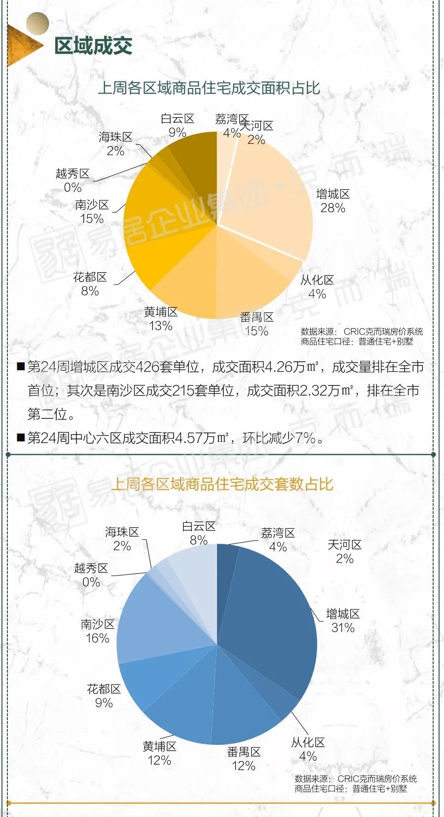 其中,增城区成交426套单位,成交面积4.26万㎡,成交量排在全市首位;其次是南沙区成交167套单位,成交面积2.27万㎡,排在全市第二位。