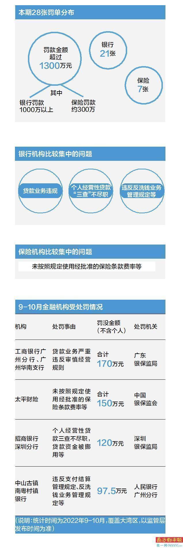 不过,业内人士分析,大湾区近期金融业罚单数量、被罚总金额均有所下降,一定程度上反映了银行保险业违规行为得到改善。值得留意的是,本报告期内,百万级的大额罚单仅3张。