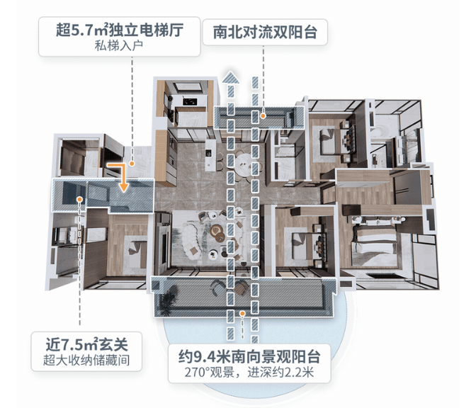 龙湖御湖境作为龙湖全新进阶产品,在户型方面也是极致内卷。建面约125㎡四房,做到约7.4米阳台;建面约143㎡户型,阳台长达8.4米;建面约190㎡户型,更是以约9.4米超长阳台,实现更高维度的人居进阶。