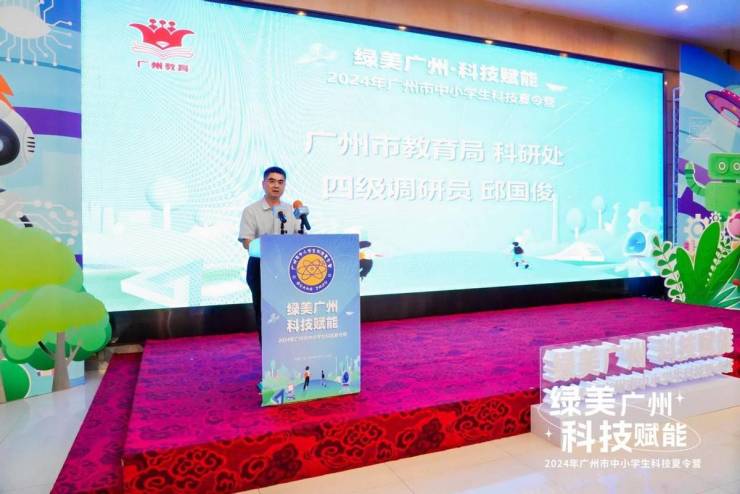 开幕式上,广州市教育局科研处四级调研员邱国俊发表了致辞,指出在新时代背景下,新质生产力的发展离不开教育的先导性、科技的主导性和人才的创造性,强调科技教育在培养新时代创新人才方面的重要性,并寄语参加夏令营的同学们要利用这一宝贵机会,充分展示自我,勇攀科技高峰。