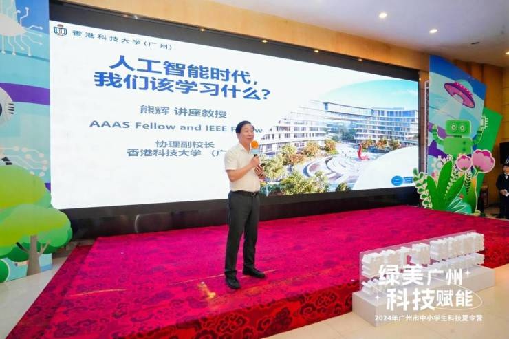 本次夏令营开幕式还邀请了香港科技大学(广州)协理副校长、教授 熊辉作为人工智能领域专家分享了题为《人工智能时代,我们应该学习什么?》的TED演讲,为营员们揭开了人工智能的神秘面纱,激发科学求知欲望,引领他们眺望科技前沿。