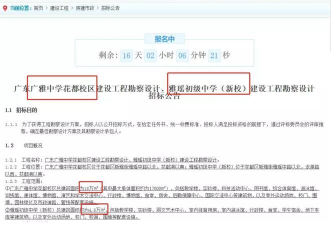 2月8日,广州公共资源交易网发布了《广东广雅中学花都校区建设工程勘察设计、