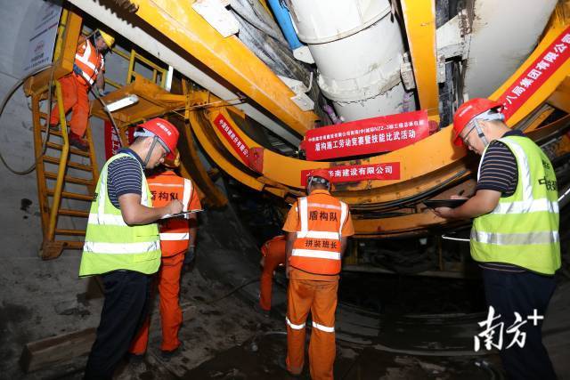 近日,在广州南沙区的南珠(中)城际十涌站施工现场,随着“铁兵南沙4号”盾构机刀盘缓缓转动,标志着十涌站至万顷沙站区间(下称“十万区间”)全面进入盾构施工掘进阶段。此外,为全力保障盾构掘进实现全年“洞通”目标,来自施工一线的数千名建设者以赛促学、以赛促干,开展盾构机“大比武”,全面提升盾构技能水平和应急处置能力。
