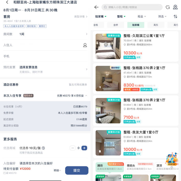 “也有同事正常租房,但可能住得比较远。我觉得在上海来讲的话,通行距离也是要考虑到成本之中的。对我个人而言,如果考虑在公司周边租房子,费用会变得更高,盘算下来长租酒店的方式对我来说更划算一些,也蛮适合我想要的节奏。”Peggy表示,“而且住得久就会有很多积分,会有抵扣券,抵扣完折扣力度也还是挺大的。我们公司蛮多像我这样工作性质的人选择这种方式。”