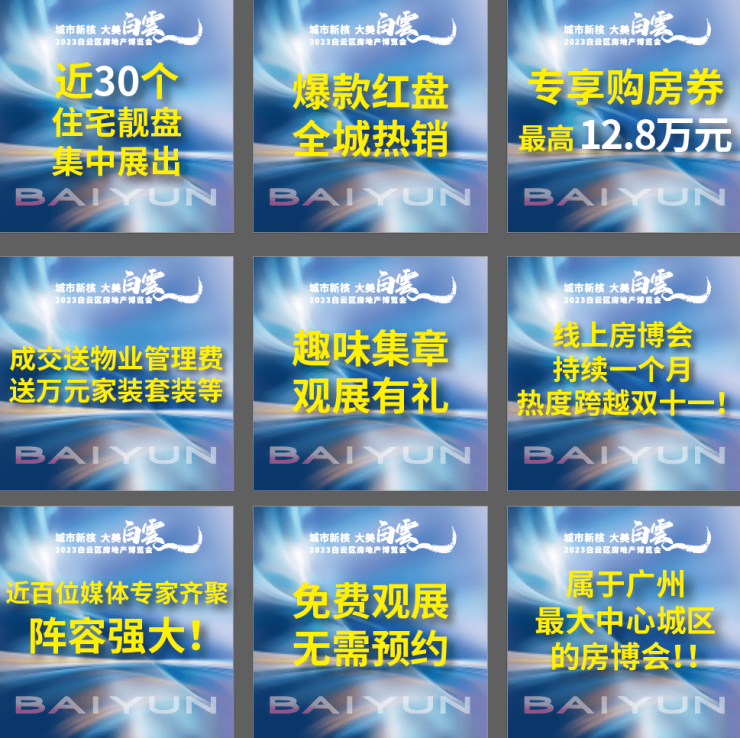 本次博览会由广州市住房和城乡建设局、广州市白云区人民政府指导,广州市房地产行业协会、白云区房地产行业协会主办,涵盖了白云区内在售的近三十个项目,集中放“价”,优惠多、力度大,项目覆盖白云新城、白云湖数字科技城、湾区新岸(罗冲围)片区、广州设计之都、美丽健康产业园、民营科技园等多个热门板块。