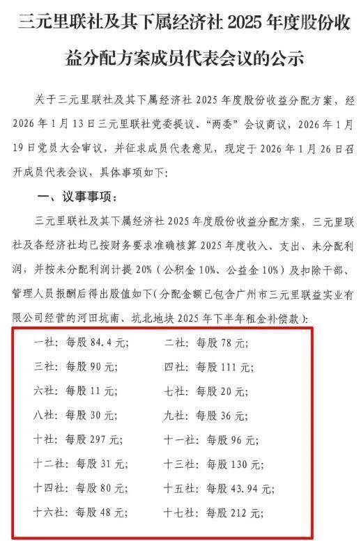 广州多村分红数据流出!每股11元与2700元差距何来?