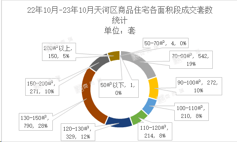 克而瑞数据监测显示,近一年天河区成交70-90㎡户型共542套,市场份额为19%。