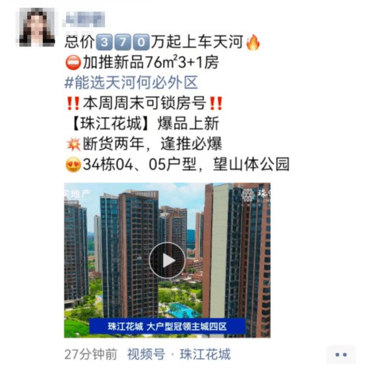 目前天河润府已经跃跃欲试,珠江花城也不甘示弱,在新房市场上做出动作,抢先拿区位+朝向没那么好的小户型,提前抢客。