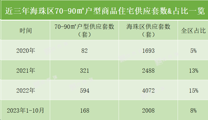 但与天河不同的是,放眼整个海珠,近几年来海珠区70-90㎡户型供应套数已经越来越少,“且买且珍惜”。