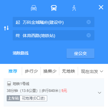 位于1号线花地湾站不到600米的万汇天地·曦府(原万科金域曦府二期项目),从家门口出发通勤到体育西路站约38分钟。