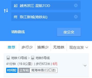 目前五号线东延段暂未开通,需要搭乘13号线转5号线到珠江新城站,大约需要40分钟,后期开通之后,时间可以减少至30分钟,简直是打工人的福音盘。