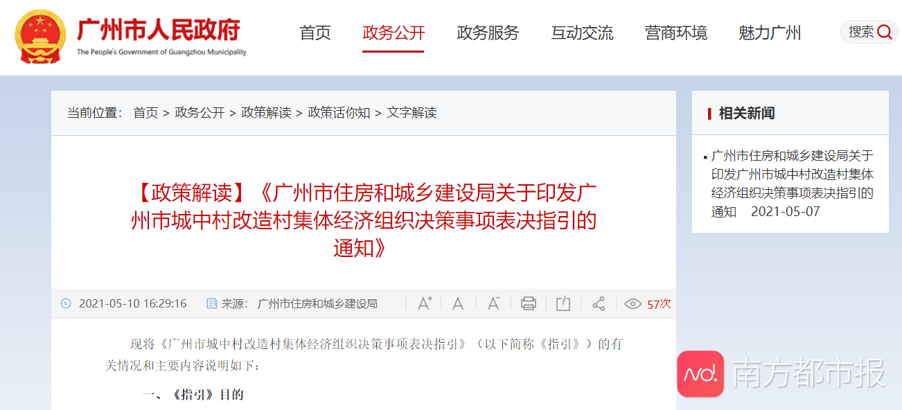而刚刚, 广州市住房和城乡建设局发布了对《广州市住房和城乡建设局关于印发广州市城中村改造村集体经济组织决策事项表决指引的通知》(以下简称《指引》)的政策解读。