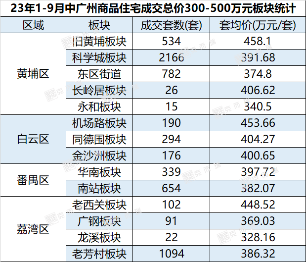 克而瑞数据显示,该总价段热门置业板块黄埔区科学城,今年1-9月中合计成交2166套商品住宅,成交主力来源于合生中央城,成交均价35468元/㎡,荔湾老芳村以1094套商品住宅次之,成交主力来源于保利和悦滨江,成交均价42535元/㎡。