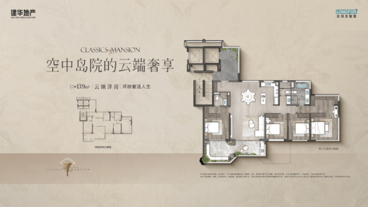 约5.1米面宽客厅打造光影剧场,既可举办艺术沙龙,亦可秒变家庭影院。约24㎡空中岛院衔接270°环幕观景视野,配合全赠送飘窗系统与三分离卫浴体系,在建面约139㎡空间内营造出200㎡级空中合院体验。