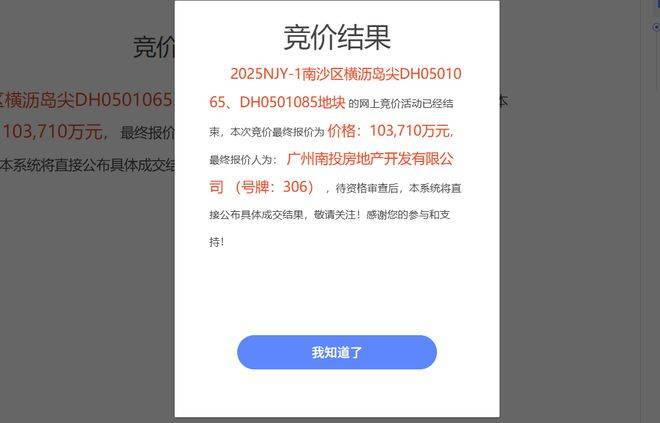 12月8日,广州南投以228380万元的总价,拿下横沥岛2025NJY-1、2025NJY-2和2025NJY-3地块。
