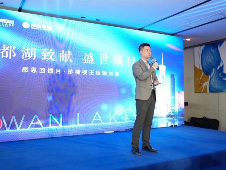 在发布会上,项目邀请到南驰集团营销总监沈锐培先生上台发言,讲述了从南驰集团品牌,到都湖国际项目的城市区位、景观资源、醇熟配套、建筑工艺、精品户型等人居特性,无一不体现着项目高品质人居生活。此次6A栋楼尊的产品亮相,引得了现场一片沸腾。