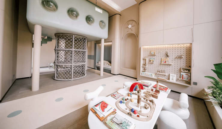 越秀·大学·星汇锦城打造了沉浸式泛会所空间,以高约6.3m的架空层,打造为恒信新风、全龄、无直角泛会所空间。