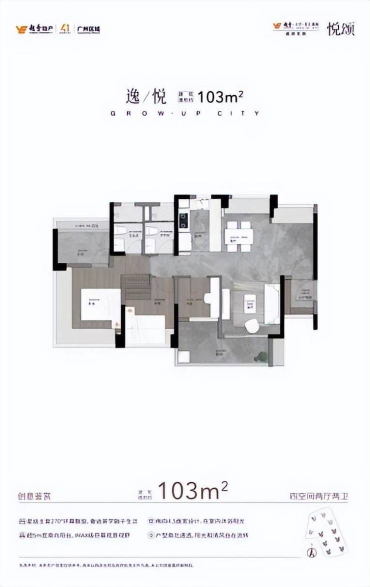 建面约103㎡四房两卫,单价3.08-3.12万/㎡,总价317-321万;