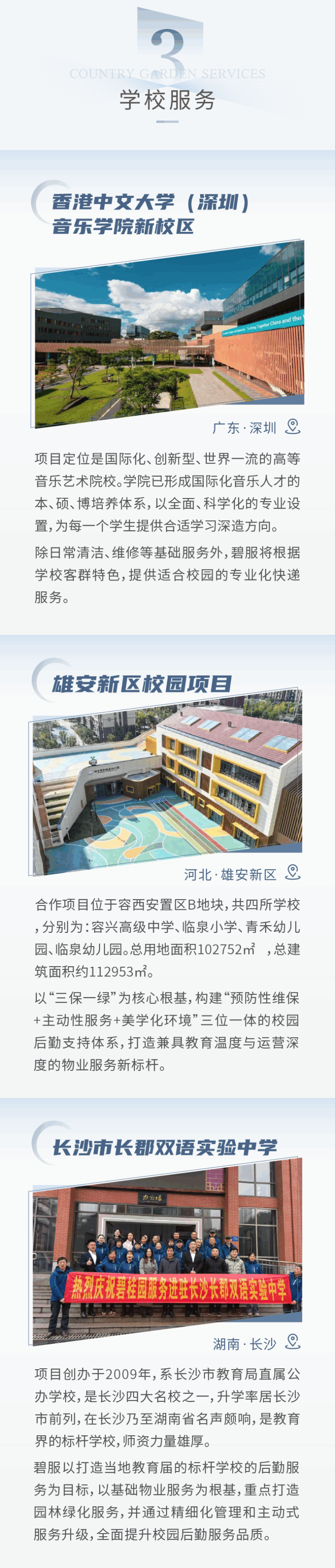 截至3月31日,碧桂园服务集团覆盖全国117个城市,成功签约251个优质项目。此次战略布局不仅延续了企业在住宅领域的传统优势,更以覆盖医院、学校、商办、产业园及市政服务等全业态服务,展现碧桂园服务市场拓展的硬核实力。