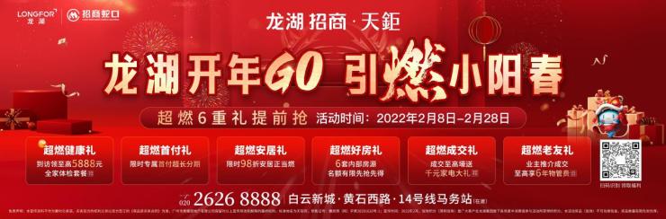 开年吉时之际,龙湖招商·天鉅以2021年白云新城600万+改善住宅市场、签约金额NO.1的佳绩,荣膺销冠红盘,为了答谢广大购房者的厚爱,项目推出超值钜惠六重壕礼,快来一起get收礼攻略吧!限时置业礼抢额外98折,抢占限量首付分期名额;成交砸金蛋,至高抽品牌家电(珑珠兑换);老友相荐,业主推荐新客户较高即赠888珑珠,推荐成交至高享5年物管费(珑珠兑换),开年购不停,引燃小阳春。