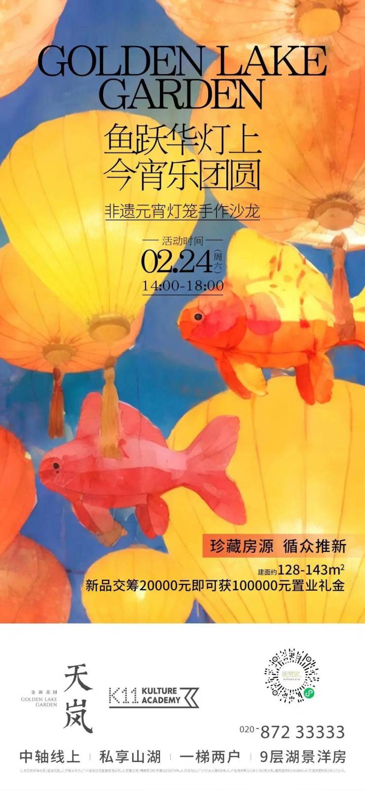 与此同时,在周末,天岚 X K11文化学院还将在项目现场举行“鱼跃华灯上 今宵乐团圆”非遗元宵灯笼手作沙龙活动。