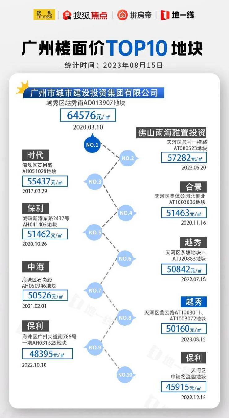 意味着黄云路AT1003011、AT1003072地块一跃成为广州楼面价TOP8地块,广州TOP10地块排名再次被刷新!