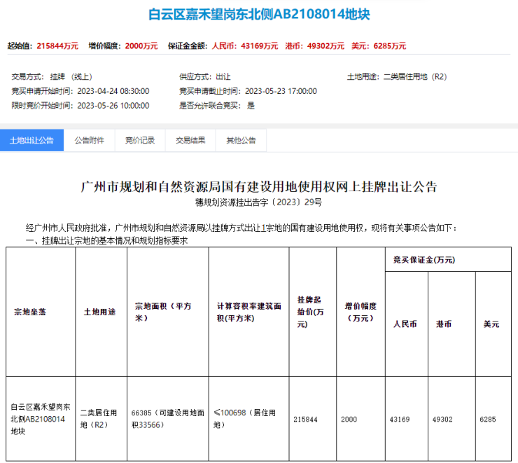 近日,嘉禾望岗东北侧AB2108014地块再度挂牌,拟于2023年5月26日10:00公开出让。