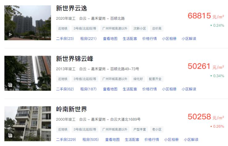 二手项目如锦云峰、嘉云府、凯云新世界等,售价在4.4-6.5万/㎡不等。