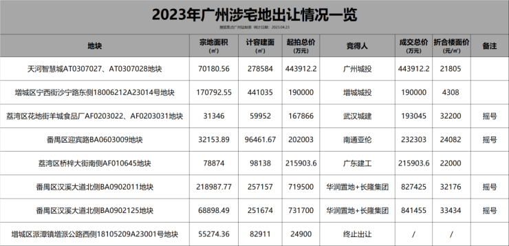 2023年广州土拍,还是开了个好局。首批次的8宗涉宅地中,7宗成交,1宗终止出让。当中,还包括了4宗火到摇号的地块。