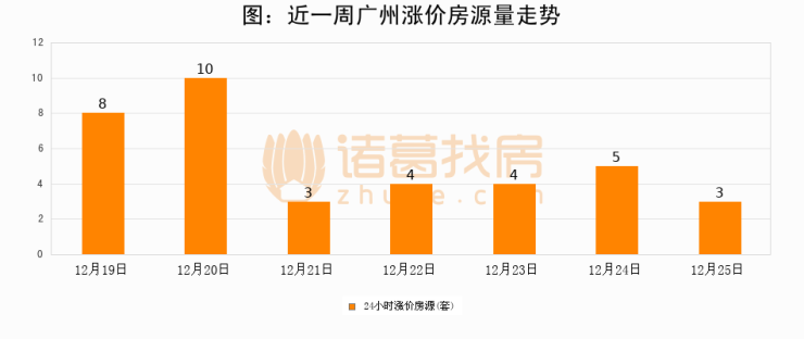 根据诸葛找房数据显示,广州24小时涨价房源量为3套,较12月24日减少2套,环比下降40%。与此同时,涨价房源占比小幅回落,对于购房者来说是一个入市窗口期,购房者可抓住时机入市。