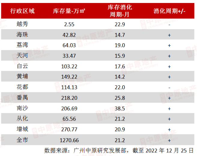 广州中原研究发展部数据显示,截至2022年12月底,南沙一手住宅库存去化周期已达到38.5个月,在11区中居第一位。