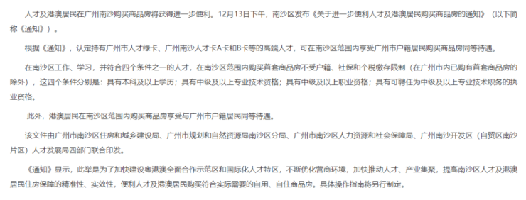 那一年8月,南沙发布《关于调整人才及港澳居民购买商品房政策的通知》。