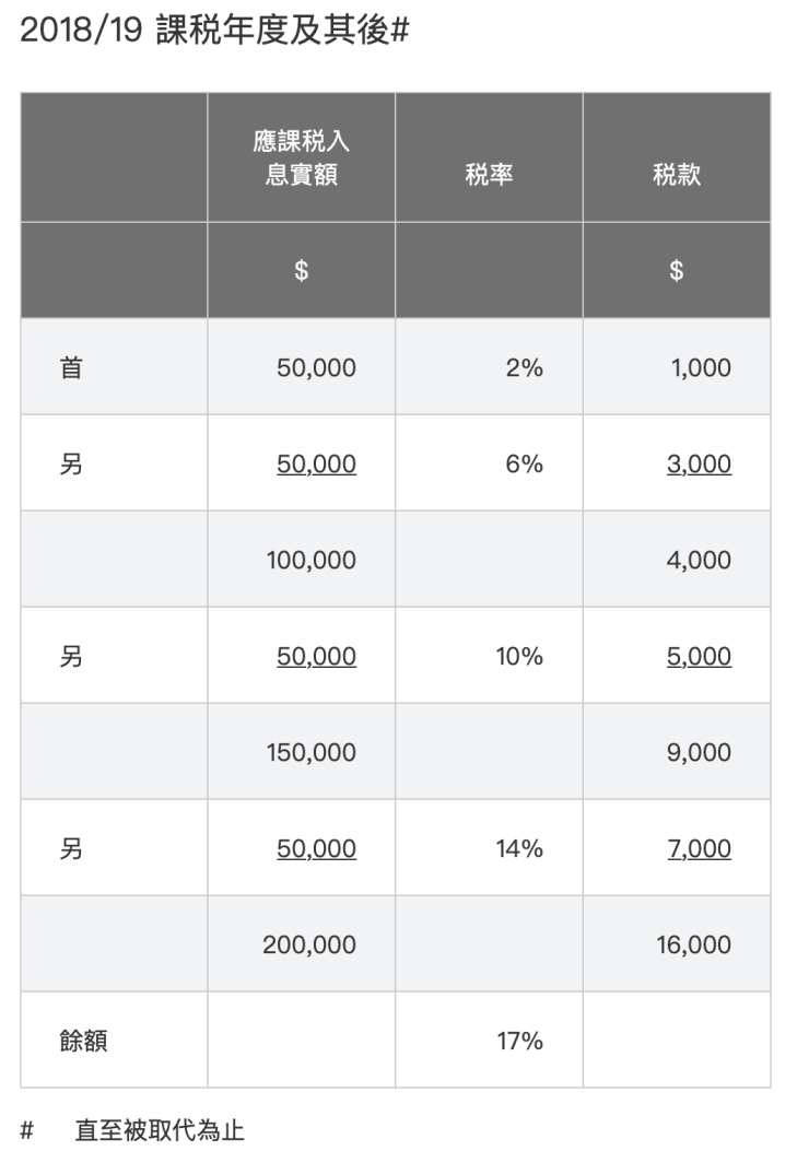 香港的薪俸税及个人入息课税按照累进税率的征收方法。图片来自香港特区政府税务局