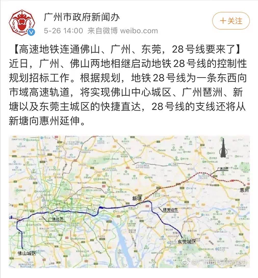 今年6月,广州、佛山两地相继启动地铁28号线的控制性规划招标工作,地铁28号线浮出水面。