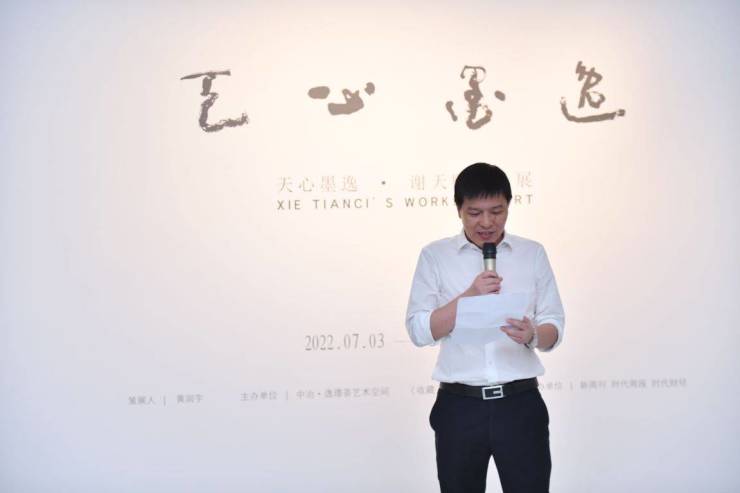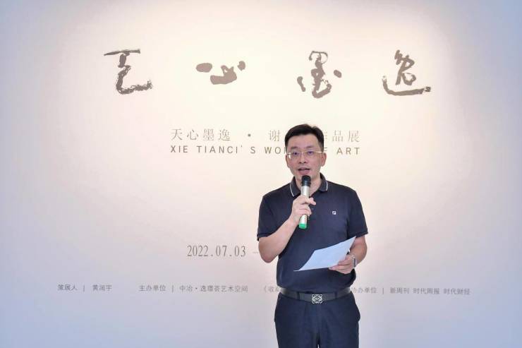 开幕式开始,中冶置业广州公司总经理吴双胜、广东时代传媒集团有限公司总经理严友良、当代写意实力派画家谢天赐老师致辞,畅谈建筑与艺术,艺术与收藏,大写意的发展等,内容广博。