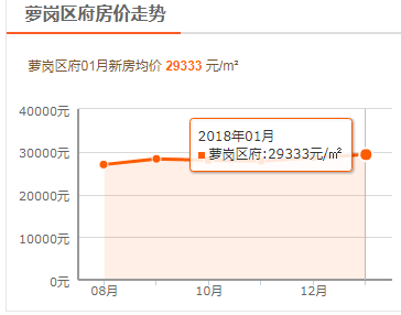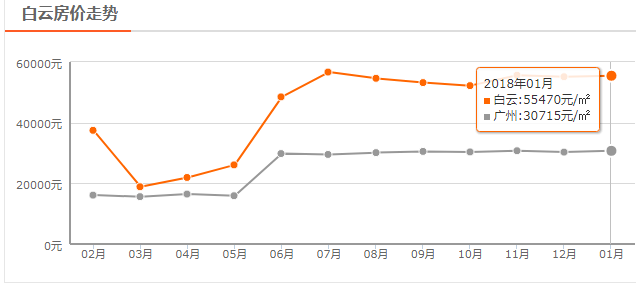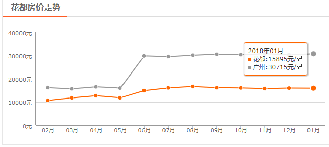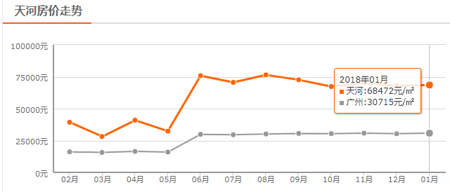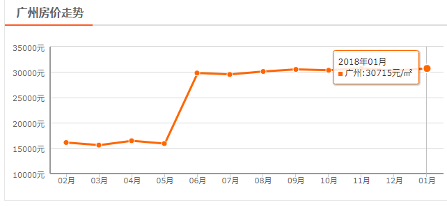 数据显示,广州2018年01月新房均价30715元/m?,环比2017年12月新房均价30298元/m?,增长1.38%。