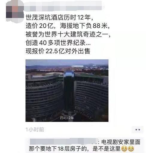 世茂集团挂牌22.5亿出售深坑酒店,地下16层,系打卡胜地