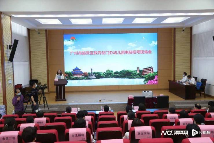 越秀区教育部门办幼儿园招生电脑摇号仪式现场。图片来源:广州越秀教育