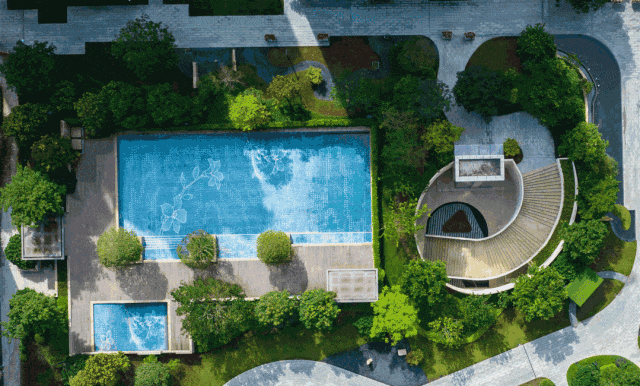 在美学园林方面,打造出别具一格东方山水园林景观,从南正门的红枫、罗汉松,进入眼帘的是潺潺叠水,两边的朴树、乌桕、冬青等名贵树种,构成迎接业主的三重归家礼序。禅意山水、生活美学,一步一景,尽享大自然生态之美。
