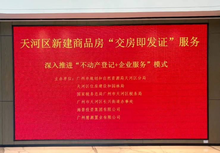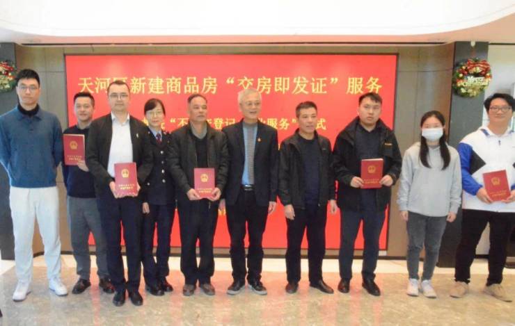 天河区为持续提高企业群众办事的体验感和获得感,深入推进“不动产登记+企业服务”模式。2023年12月28日广州市规划和自然资源局天河区分局、天河区住房建设和园林局、国家税务总局广州市天河区税务局、广州市天河区长兴街道办事处、海景投资集团有限公司、广州慧源置业有限公司,在慧源山庄共同举办天河区新建商品房“交房即发证”服务活动。慧源山庄多位业主欢聚一堂,共同见证“交房即发证”的活动仪式。