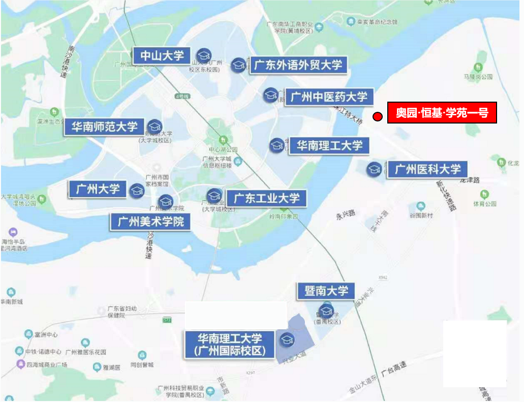前文提到,新化快速开通串联三大黄金发展区的意义,奠定了“金融城-琶洲-国际创新城”20分钟交通圈;其实他也奠定了,国际创新城板块在广州的核心位置,意味着能够快速的实现全城的通达。新化快速北至新化东路,由新洲立交联广州环城高速,南至化龙立交联广州绕城高速,也是两大高速最短射线的快速路。距项目约1.7公里,已部分通车的南大干线,由西向东依次连接广州南站枢纽、万博CBD、汽车城、莲花山景区等番禺核心板块,形成一条横贯番禺东西的经济发展带,让项目与番禺周边核心区域都在半小时以内。南大干线向西可通过在建的番海大桥与佛山市衔接,向东可通过规划的莲花山过江通道与东莞连接,往南连接高级自贸区南沙新区,粤港澳大湾区横向交通的重要动脉。而奥园恒基学苑壹号所处位置正好是两个道路黄金交叉点所在。