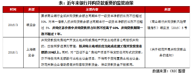 2008年至2015年的七年间,银行对申请并购贷房企的自有资金要求很低。然而2015年银监会修订《商业银行并购贷款风险管理指引》,提高并购贷准入门槛,要求并购交易价款中并购贷款所占比例不应高于60%。2018年1月底,上海银监局下发《关于规范开展并购贷款业务的通知》,对房企准入门槛和并购贷投向上的要求更为严格,将原适用于开发贷的“432”条件也适用于并购贷,同时强调并购贷款投向房地产开发土地并购或房地产开发土地项目公司股权并购的,应按照穿透原则管理,拟并购土地项目应当完成在建工程开发投资总额的25%以上,并对“四证不全”房地产项目不得发放任何形式的贷款,亦不得投向未足额缴付土地出让金项目,不得用于变相置换土地出让金。但在当前实际操作中,针对首批12家出险房企,近期监管表态涉及四证不全并购项目、并购贷款置换土地出让金等合规性要求可能有所放松。