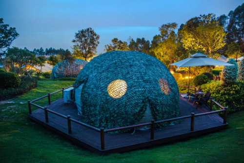 花都木莲庄酒店全新打造的“猎户座”帐篷房——“星云房”和以星空为主题的“奇点房”,打破了四面墙壁的束缚,让旅客在诗意空间里尽享幕天席地的新奇体验。