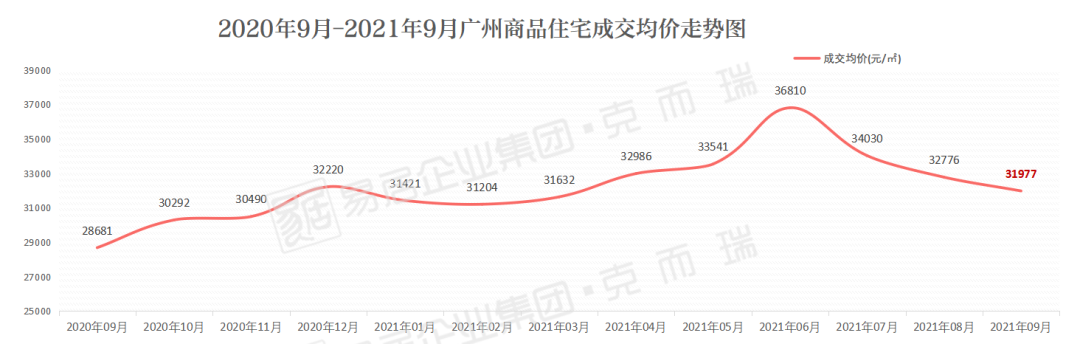 广州楼市“稳房价”的调控正在显露成效!克而瑞数据显示,9月广州商品住宅(口径:普通住宅+别墅)网签均价为31977元/㎡,环比下跌2.44%,同比上涨11.49%,统计到这已经是广州均价三连跌,创近6个月的低位!
