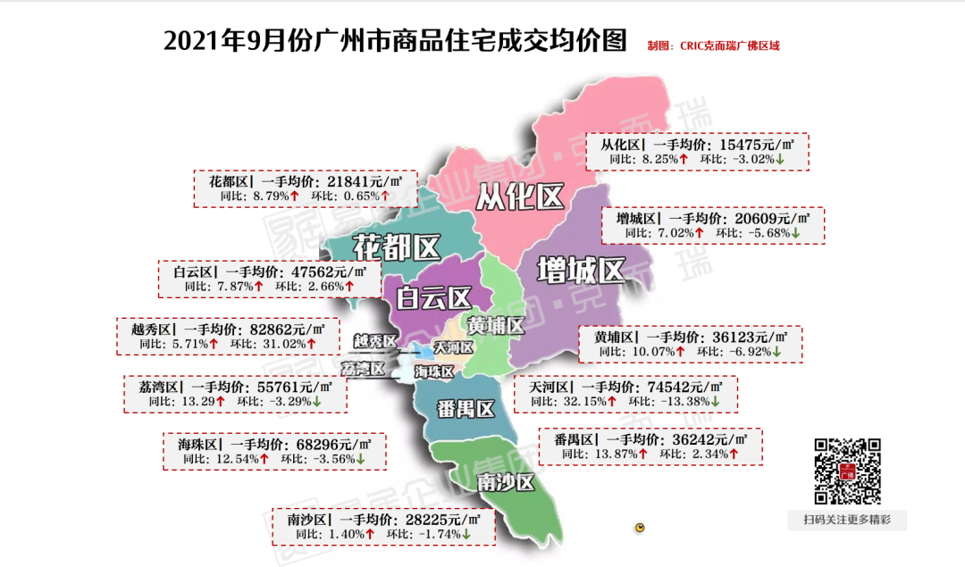 而在限价、限签、降价等多重因素的作用下,9月广州一手住宅网签均价下滑至31977元/平方米,已经是三连跌,创近6个月的低位,均价水平与今年一季度相仿。由此可见,今年以来广州围绕“稳房价”的系列调控正在显露成效。