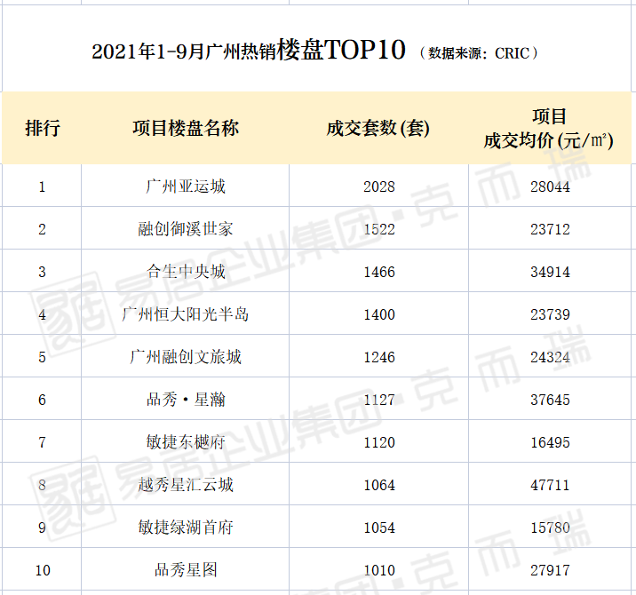 结尾前,再说说1-9月广州热销楼盘,大体量的广州亚运城再次登榜排名前列,在1-9月网签成交2028套,并且是目前广州少有一盘超2000套成交量的楼盘;排名前三的还有,融创御溪世家和合生中央城。