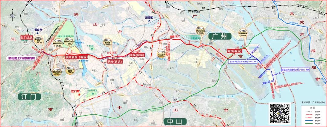 其中,深圳至江门段又名深江铁路,将在南沙站设站,为4台11线规模。