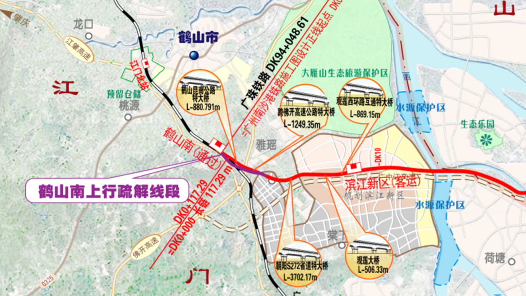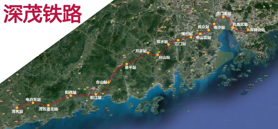 深茂铁路是国家“八横八纵”高快速铁路网中的重要干线铁路(高速),深茂铁路正线全长390公里分两部分进行建设,分别为:江门至茂名段和深圳至江门段。