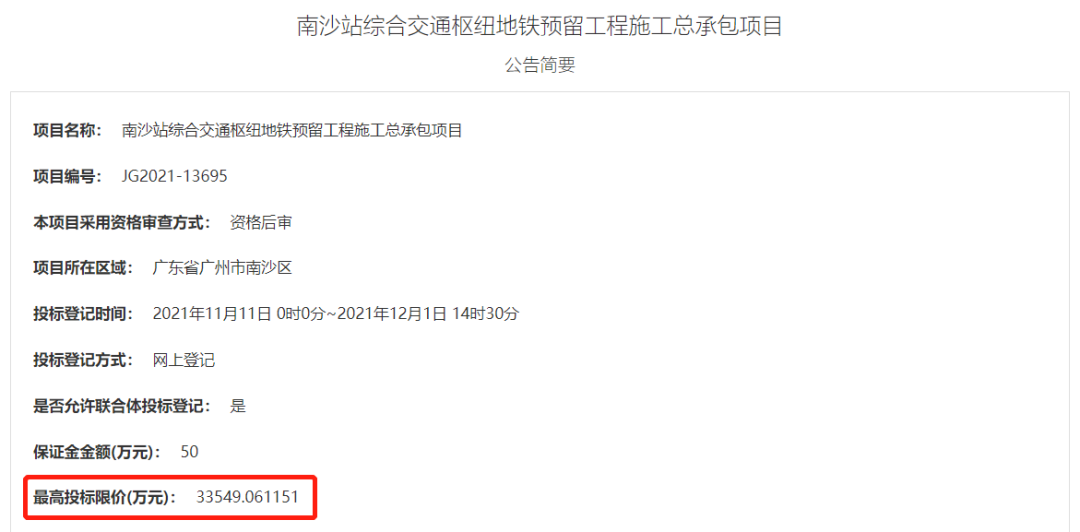 就在”双十一“来临之际,部落从相关信息了解到,《南沙站综合交通枢纽地铁预留工程》正式发布施工总承包招标,总投资额约3.4亿元人民币!而这个工程就是地铁15号线车站的土建工程(文件明确)!